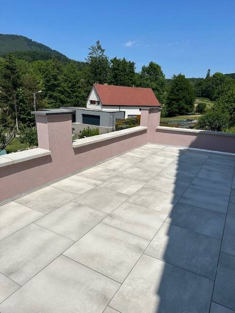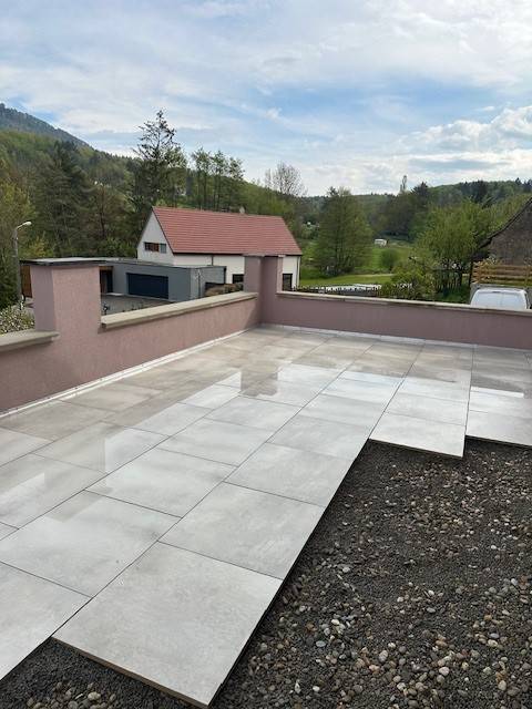 A Hohwarth nous avons crée une terrasse de 36m² en béton coffré coulé sur place, d'un carreau en grès cérame.