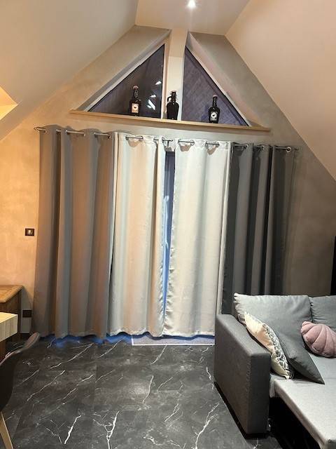 Démolition d'un logement sous comble, isolation en bloc de chanvre doublé 3x12 cm et réalisation des enduits à l'argile.